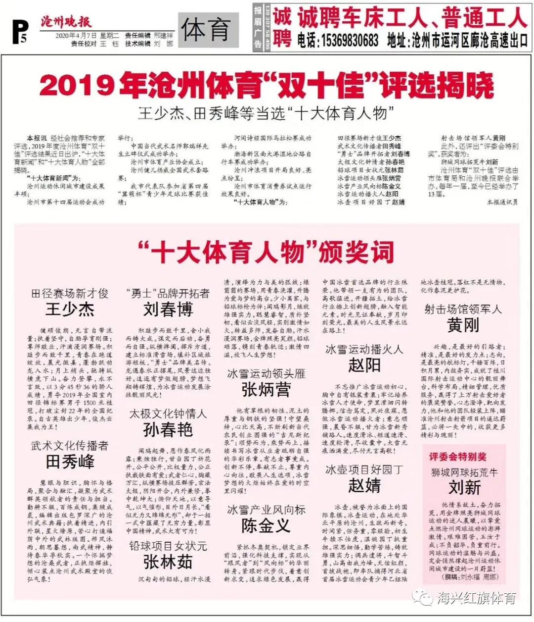 亿德体育董事长荣获“2019年沧州十大体育人物”称号