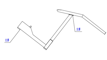 3.将篮架倾斜,同时用硬物支撑,用M16X40螺栓将立柱和伸臂连接牢固。(见图三)