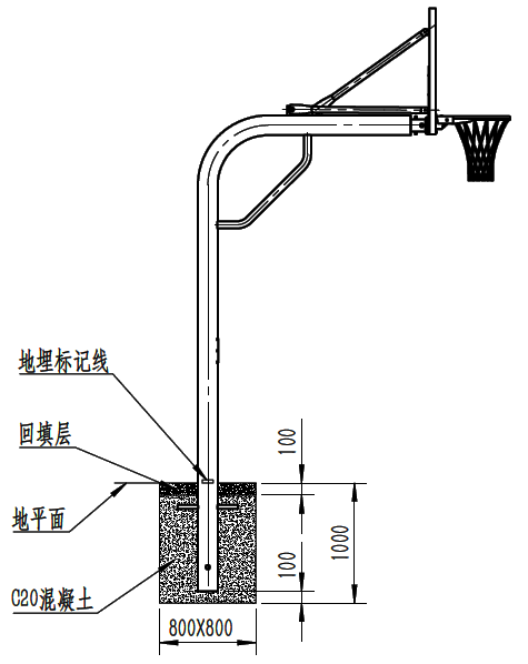 2.1埋入地下的体育立柱,地埋部分应具有横向支撑或支撑盘;地埋体育应标志出永久地埋标志线,地埋结构详见施工图。